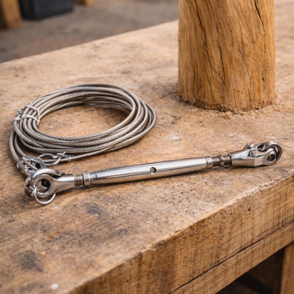 Le haubanage répartit les efforts, améliore la stabilité du mât et réduit les contraintes mécaniques au niveau de la tête, ce qui sécurise la tenue globale du poteau en bois.