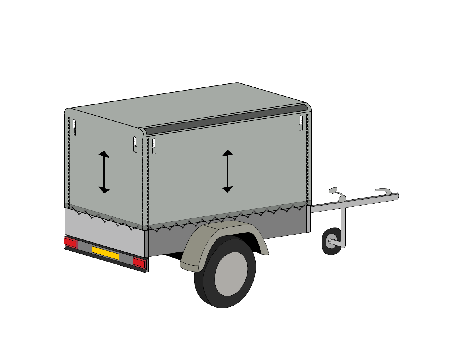 Bâche pour remorque bagagère Bord arrondi droite en Membrane PVC 670gr/m² Gris clair RAL 7038